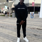 The classic SIMPLE Brand Co. "KEEP IT SIMPLE" Black Sweatsuit. This sweatsuit is essential apparel for those who prioritize comfort without compromising on style. The perfect addition to any wardrobe, offering breathability and exceptional quality.